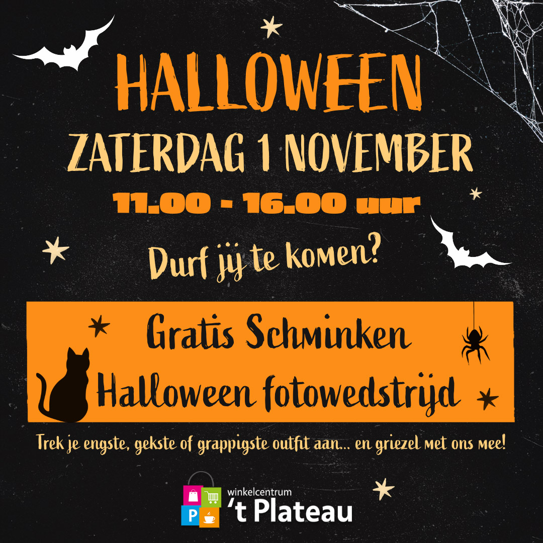 Griezelpret op 't Plateau! 𝐙𝐚𝐭𝐞𝐫𝐝𝐚𝐠 𝟏 𝐧𝐨𝐯𝐞𝐦𝐛𝐞𝐫 gaat het griezelen op Winkelcentrum 't Plateau. Tussen 11.00 en 16.00 uur zijn alle kinderen welkom om zich te laten omtoveren tot enge...
