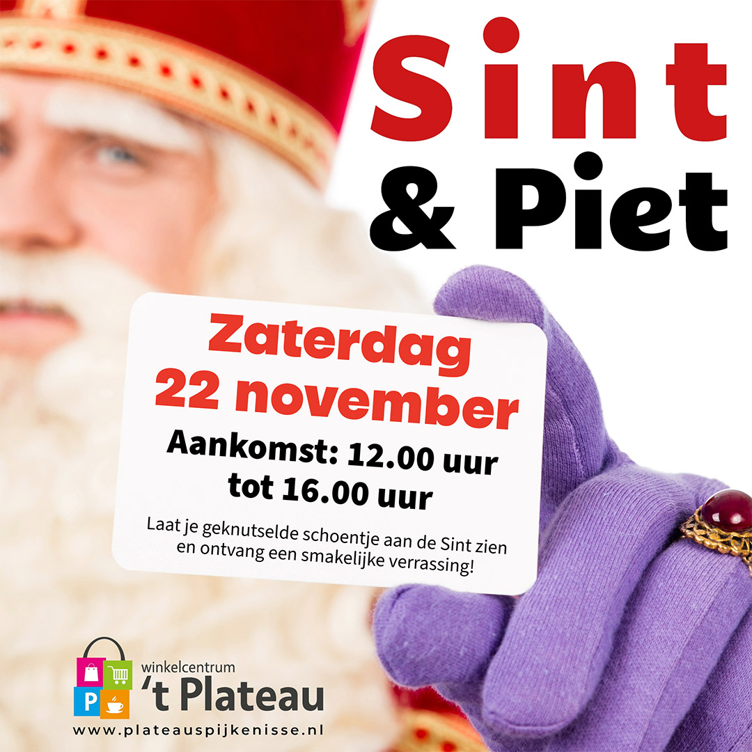 𝐙𝐚𝐭𝐞𝐫𝐝𝐚𝐠 𝟐𝟐 𝐧𝐨𝐯𝐞𝐦𝐛𝐞𝐫 wordt het extra gezellig op Winkelcentrum 't Plateau, want Sint en Piet komen op bezoek! 𝐙𝐞 𝐚𝐫𝐫𝐢𝐯𝐞𝐫𝐞𝐧 𝐨𝐦 𝟏𝟐.𝟎𝟎 𝐮𝐮𝐫 𝐞𝐧 𝐛𝐥𝐢𝐣𝐯𝐞𝐧 𝐭𝐨𝐭 𝟏𝟔.𝟎𝟎 𝐮𝐮𝐫 om alle kinderen te begroeten, handjes te schudden en natuurlijk... lekkers uit te delen! 𝐃𝐨𝐞 𝐦𝐞𝐞 𝐦𝐞𝐭 𝐝𝐞 𝐬𝐜𝐡𝐨𝐞𝐧-𝐤𝐧𝐮𝐭𝐬𝐞𝐥𝐚𝐜𝐭𝐢𝐞! In de winkels met de Sinterklaas-raamposter ligt een... |