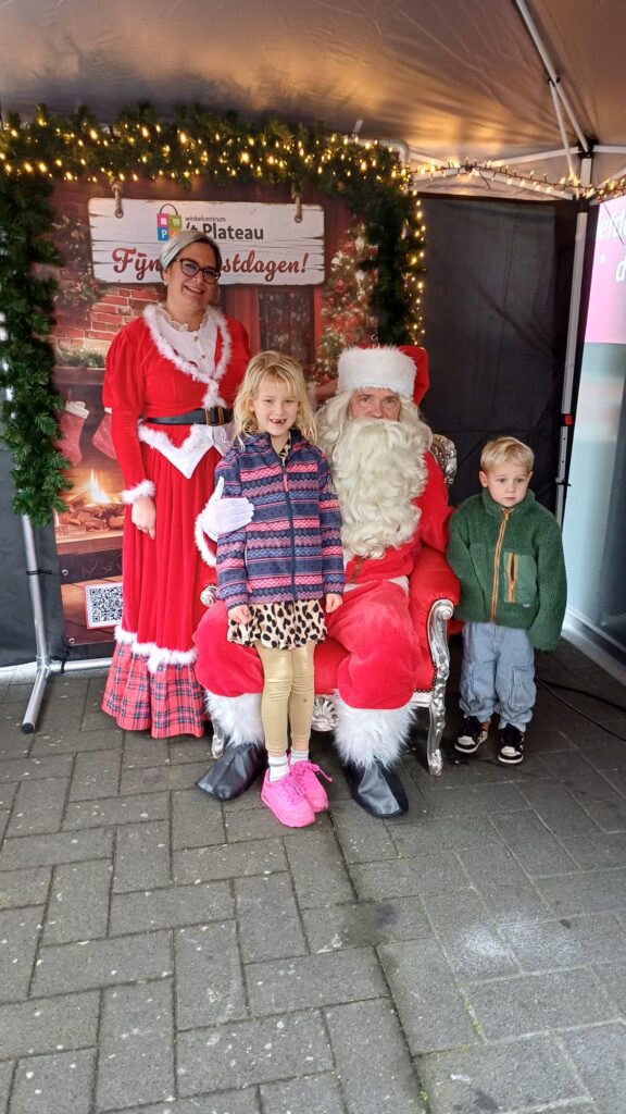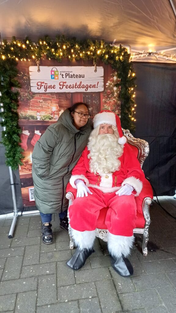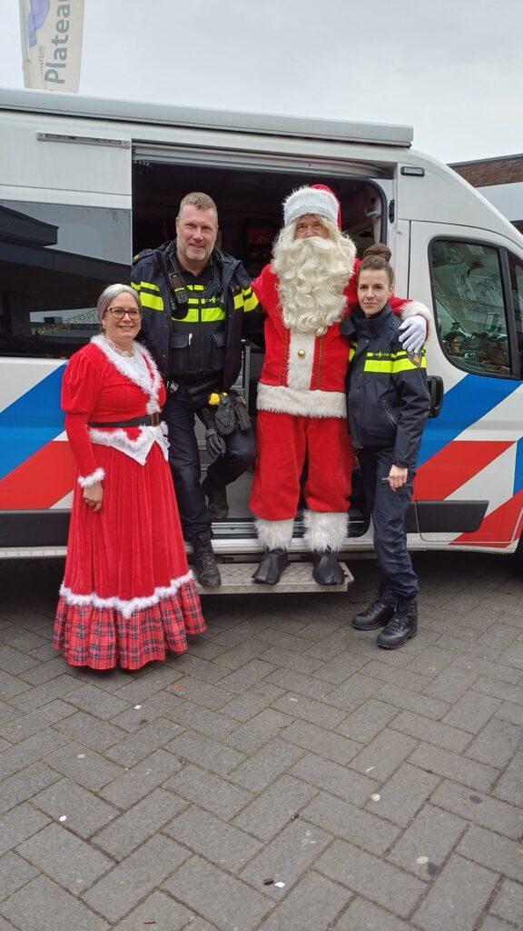 Natuurlijk ging de kerstman ook even bij de ondernemers langs en zelfs de politie maakte een kerststop: een praatje, een glimlach en… op de foto met de kerstman.